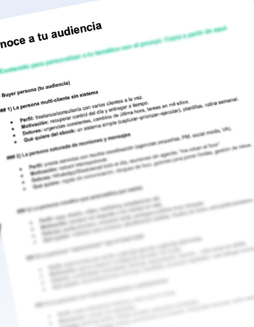Prompts estratégicos para extraer lo clave: qué vende tu oferta, qué frena la compra y qué palabras usa tu cliente. Úsalos en ChatGPT, Gemini, Claude o el modelo que prefieras.